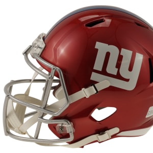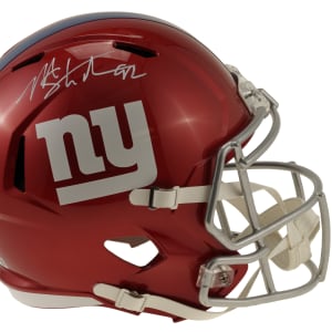 New York Giants Hall of Famer Michael Strahan signed full-size speed replica helmet. Beckett certification sticker is affixed to the helmet.The size/weight of this item requires that there will be an additional shipping charge for this lot.