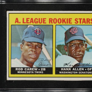 Graded VG/EX+ 4.5 by SGC. Minnesota Twins Hall of Famer Rod Carew.