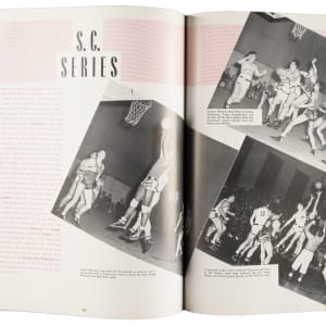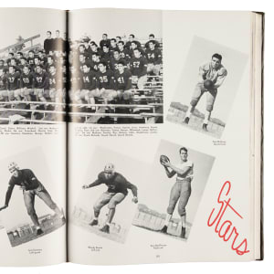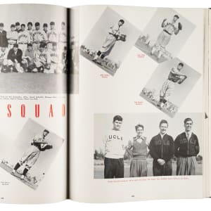 The University of California at Los Angeles (UCLA) Southern Campus yearbook, dating from 1940, Jackie Robinson's first year at the school. Robinson was UCLA's first athlete to earn varsity letters in four sports. Robinson was one of four African American players on the football team, along with Kenny Washington, Woody Strode, and Ray Bartlett. Washington would become the first black player to sign an NFL contract, followed shortly thereafter by Strode. Robinson also played baseball and basketball and was a member of the track and field team. The 429-page yearbook (9.5 x 12 inches) displays light handling wear and is in Excellent condition overall. Robinson is mentioned and pictured multiple times, including him as a member of the school's baseball, football, and basketball teams.