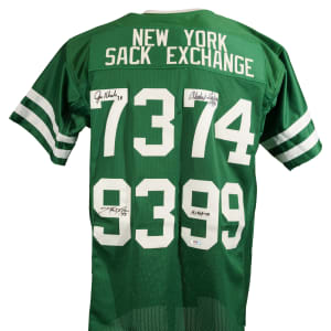 New York Jets Hall of Famer and Stars Joe Klecko, Mark Gastineau, Marty Lyons, and Abdul Salaam signed jersey. Basic certification from PSA/DNA.